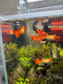 Disponibili avannotti di tre mesi di Guppy koi ful red ho solo disponibilità di femmine per info in privato in foto si intravedono quelli adulti sono i genitori c'è anche la possibilità che siano Guppy dumbo koi full red