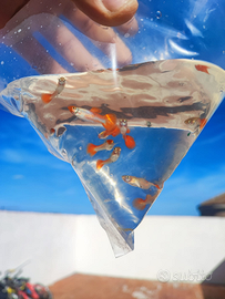 Vendo splendidi esemplari di koi allevati nelle mie vasche all 'aperto, quindi super resistenti e super selezionati, prezzo 4€ 1, 10€un trio, di adulti, mentre per i più o prezzo varia n base alla dimensione e alla quantità, inoltre possiedo altri guppy non selezionati geneticamente come questi, ma altre belli al prezzo di 2€ l'1, oltre a caridine,piante,medaka ecc. Per qualsiasi info contattate anche WhatsApp (3922361080)!
