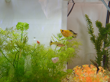 Vendo guppy adulti maschi e femmine, avannotti di guppy, molly baloon, neocaridine arancio oppure rosse, lumachine physia. Prezzo da concordare in base al tipo di pesce e quantità.