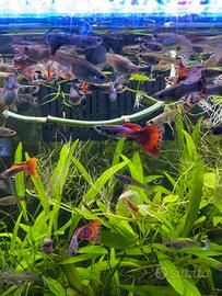 I miei guppy sono nati e cresciuti in casa, garantendo salute eccellente e genetica robusta. Vantano una varietà di colori e forme della coda: dal classico Coda a ventaglio al suggestivo Coda a lira, con sfumature varie, combinazioni uniche che ti lasceranno a bocca aperta. Disponibili anche semplici, senza particolari colori.