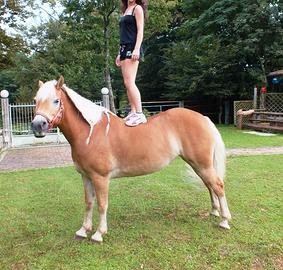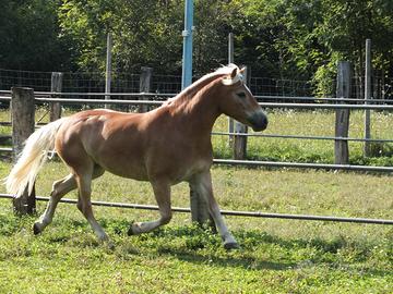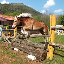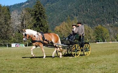 HAFLINGER SPORTIVA , DRESSAGE, SALTO, ATTACCHI - NOBILE GENETICA - COMPORTAMENTO INECEPPIBILE - SICURA - ADDESTRAMENTO SUPER Austriaca, genetica di massima caratura. Importante anche il valore allevatoriale. Magnificamente intelaiata con robusta ed armonica architettura, di eleganza impeccabile, rappresentanza di una perfetta fusione di punti di punti di forza con linee di bellezza. Nell'osservare la cavalla, già la prima impressione traduce lo stato di salute ottimale, l'aspetto estetico scaturisce un'emozione artistica. L'esame dell'apparato locomotore, esprime gli elementi qualitativi: gli appiombi regolari, i piedi robusti e sani, l'elasticità e la fluidità dei movimenti, il buon gesto e la tecnica nel salto. L'armonia che si nota è la corrispondenza del treno posteriore ed anteriore e questa giusta proporzione dell'influenza reciproca che esercitano l'uno e l'altro in tutti i movimenti. Le andature espressive la rendono facile e piacevole da montare Cavalla con le più ampie possibilità d'impiego: dressage, salto, prove di completo, attacchi. Premiata! 1. classificata nelle prove morfologiche, addestramento del dressage, nel salto, negli attacchi. Allevata ed addestrata con competenza, entusiasmo e passione, seria dedizione, amore e rispetto. Abituata a lavorate in maneggio, in campagna, in montagna, dentro il mare, nel traffico, da sola o con altri cavalli, trasmette sicurezza al cavaliere meno esperto e a chi cerca un cavallo assolutamente sicuro ed affidabile, generoso. Sale in trailer da sola. Non ha paure e affronta ogni situazione con disinvoltura. Cavalla dal temperamento calmo, dolce, intelligente, coraggiosa. Utilizza l'emisfero sinistro. L'onestà e una ragionevole stabilità nervosa semplificano l'obiettivo del cavaliere che è quello di far rendere al meglio il proprio cavallo, senza stress e divertendosi. Ha l'atteggiamento di chi compie un lavoro che non è in discussione, necessario ed inevitabile. h.150 Adatta a cavaliere pauroso. Chiama!