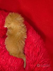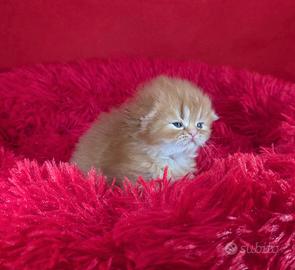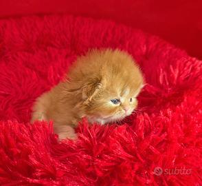 Stupendo esemplare di razza Highland Fold (Scottish Fold a pelo lungo, longhair), un maschietto rosso (Flame, SFS D). Nato il 12 marzo. Morfologicamente perfetto, testa e zampe larghe e corte, musetto cortissimo, manto foltissimo, le orecchie ben piegate e aderenti - da esposizione. Molto dolce e tranquillissimo. Perfettamente adatto ai bambini anche più piccoli e per la Pet Therapy. Nato e cresciuto in casa con le cure migliori e sotto regolare controllo veterinario. La mamma - Scottish Straight /(Alias British) Marble Cream SFS71 E22. Papà - superlativo Scottish Fold Black Golden Ticked Tabby - SFS NY25 (ultima foto), pesa ben 7 kili. Entrambi visibili. Sarà ceduto a compimento 60 gg completamente svezzato con cibo secco e umido di alta qualità, abituato perfettamente alla lettiera (sia aperta, sia chiusa) e tiragraffi. Verrà consegnato con libretto sanitario, certificato di buona salute, esame delle feci, vaccinato e con tutti trattamenti antiparassitari regolarmente eseguiti dal veterinario. Possibilità di mettere anche il microchip termico di ultima generazione (su richiesta). Il pedigree non è previsto. Genitori fiv/felv e pkd negativi. Possibile consegna in tutta Italia con corriere espresso autorizzato e con mezzo climatizzato. Cortesemente No Perditempo. Si offre e si richiede massima serietà. Preferisco il primo contatto tramite chat Subito o WhatsApp. N.B. Il carattere dello Scottish Fold è quello di un gatto tranquillo, socievole e di compagnia. Ama condividere vita e spazi sia con le persone che con altri animali. I gattini tendono ad essere più giocherelloni degli adulti. Adattissimi alla vita di appartamento, sono anche abili cacciatori. È un gatto che si affeziona tantissimo al suo umano, lo seguirà ovunque e avrà bisogno di coccole e attenzioni. È anche estremamente curioso, tende a nascondere tutti i piccoli oggetti che catturano la sua attenzione. Non particolarmente freddoloso. Ottimo come primo gatto!