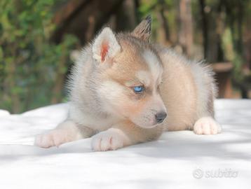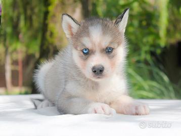 Pronti a subire un invasione di coccole? Questo meraviglioso cucciolo di Siberian Husky è alla ricerca della sua nuova famiglia. Si chiamata Thyros (nome indicativo), un tenero maschietto di 60 giorni di età con il mantello bianco e grigio, nato nel nostro allevamento cani. Affettuoso, intelligente, vivace e con tanta voglia di fare. Adora giocare e farsi coccolare.