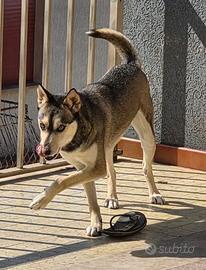 Bucky è un incrocio Cirneco/Husky di circa 3 anni, taglia media (15 kg).