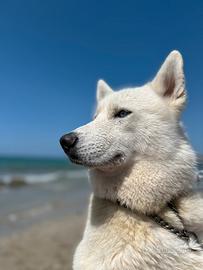 Amarok ha 2 anni con tutti i vaccini fatti. É molto vivace, affettuoso e di compagnia. Pesa 30 kili, pelo tutto bianco con occhi azzurri.
