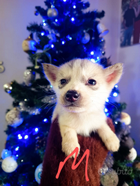 Cucciolo spettacolare di husky siberian nato il 29 ottobre..dal manto bianco beige..Gia svezzato e sverminato..coccolone Gia pronto x trovare famiglia genitori puri e visibili vivono con noi..
