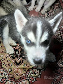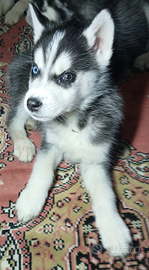 Maschio di husky siberian dal manto nero e bianco..dagli occhi neri..nata il 29 ottobre. Gia sverminata e svezzata..genitori puri e visibili vivono con noi