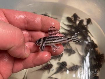 Leggere bene. L46 Hypancistrus zebra Adulti 7/10cm Giovani 4/5cm Pesci in ottima salute Mangiano di tutto. Possibilità di spedizione. Disponibile la stoklist! Abbiamo oltre 100 specie di pesci disponibili in serra! Info in pvt