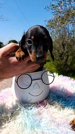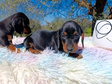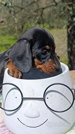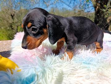 Ciao mi chiamo Luna sono una bassottina di 60 GG ho già il vaccino e microchip quindi aspetto solo di conoscere la mia nuova famiglia Se sei in zona vieni a trovarmi o scrivi a Emy,lei sa tutto di me