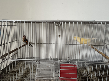 Cedo in blocco per mancanza di tempo 4 ibridi novelli di cardellino pe canarina probabilmente femmine,un cardellino nostrano anellato riproduttore,una canarina giallo brinata riproduttrice di ibridi,una coppia di agata topazio!