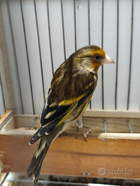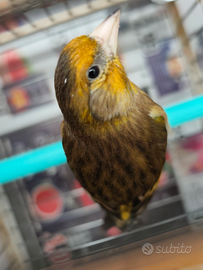 Vendo splendido soggetto di ibrido di cardellino novello 2025 con 5 mesi di vita messo sotto chiavetta da quando è nato il soggetto ha finito di mutare da poco ma deve finire di rasare già cominciata a canticchiare dietro la chiavetta mah ancora non si capisce bene presumo che abbia un leggero pio della canarina ma non lo posso confermare di sicuro in quanto ancora deve sviluppare il canto al 100X100 prezzo 70 euro
