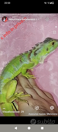 Salve a tutti, sto cedendo un'iguana verde per mancanza di tempo da dedicargli, non so bene quanti mesi di preciso abbia super giu 5 6 mesi,, ho tutto in regola (compreso il certificato cites rilasciato dove lo acquistato) lo vendo insieme il suo terrario accessori luci e termometro