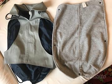 Impermeabile-cappotto per cane taglia 51 formato da 2 strati assemblabili, utilizzabile anche solo l'impermeabile. Il primo è in materiale impermeabile, il secondo è in pile molto caldo. Usato ma in ottimo stato.