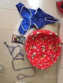 Vendo tutto insieme a 5 euro Impermeabile Museruola Pettorina con guinzaglio No cuccia.