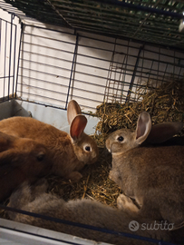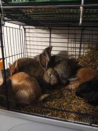 Sono conigli resistenti e abituati anche all'esterno. Sono rimasti tutti maschi ottimi come riproduttori o per la carne . Li vendo al buon prezzo di 15? l'uno