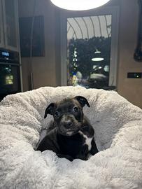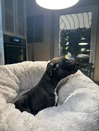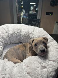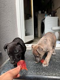 Cuccioli incrocio American bullo,taglia media da adulti bellissimi ,rimaste due femmine una nera con poco bianco sotto il collo e l'altra brindle ,denti corretti no ernie sanissimi socializzati nati in casa ,da adulti simil pittbull.