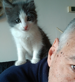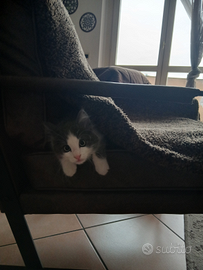 Causa problemi lavoro, vendo incrocio certosino pelo lungo, nato a inizio novembre 2025. Carattere affettuoso e vivace, per niente timido, cerca costantemente il contatto con le persone. Cedo insieme a giochi e accessori, compreso distributore automatico cibo, come da foto. Vendo a ?350
