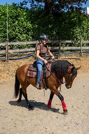 Perfetta per lezioni in maneggio, molto sicura anche in passeggiata su qualsiasi tipo di terreno.