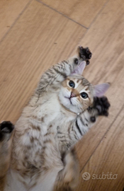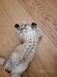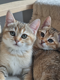 Sono disponibili un maschio e una femmina di 3 mesi di incrocio tra la mamma bengala e il papà Scottish . Sono sverminati, vaccinati , trattati per la giardia e I coccidi. I genitori sono testati al FIV, Felv e esami genetici richiesti per entrambe le razze. Per maggiori informazioni contattatemi pure per telefono 3204687821 .Grazie