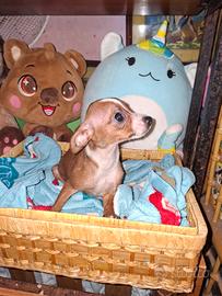 Meraviglioso cucciolo incrocio tra pincher e chihuahua toy il piccolo e maschio ha 3 mesi viene ceduto con doppia vaccinazione, svermato e con microchip il cucciolo è affettuosissimo un gran giocherellone ama la compagnia ma allo stesso tempo è abituato a stare qualche ora a casa da solo ed è abituato a sporcare sulle traversine, ama giocare con I bambini e convive con altri piccoli animali domestici tipo il gatto.