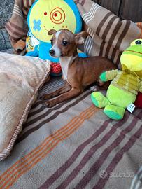Stupenda cucciola incrocio tra pincher e chihuahua toy la piccola è femmina ha 4 mesi viene ceduta con doppia vaccinazione, svermata e con microchip la cucciola è affettuosissima una gran giocherellona ama la compagnia ma allo stesso tempo è abituata a stare diverse ore a casa da sola ed è abituata a sporcare sulle traversine, ama giocare con I bambini e convive con altri piccoli animali domestici tipo il gatto. Sono visibili I genitori che pesano entrambi 1,9 chili per ulteriori informazioni non esitate a contattarmi