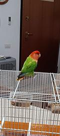 Cedo inseparabile addomesticato roseicollis NT (taglia maggiorata) maschio opalino ancestrale, € 50, oppure € 60 compresa la gabbia.