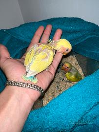 Bellissimi e simpatici inseparabili roseiccollis allevati a mano, nel nostro piccolo allevamento amatoriale dove vengono allevati fin dai primi giorni di vita con amore e attenzione. Con i migliori nutrimenti. Cosi' facendo oltre ad essere molto belli sono molto docili e coccoloni. Sono anche molto giocherelloni.