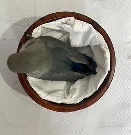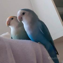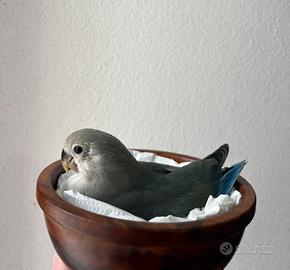 Cedo pappagallo inseparabile roseicollis allevato a mano, fa ancora 2 imbeccate al giorno, molto docile e abituato al contatto umano, inizia già a fare i primi voletti, colorazione turchese con fronte tendente all'arancio, portatore di ino, molto probabilmente uscirà come la madre visibile nell'ultima foto (quella a sinistra), ottimo per chi cerca un pappagallo già ben avviato, solo persone realmente interessate!