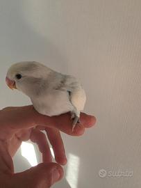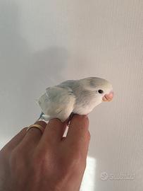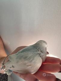 Vendo bellissimo inseparabbile roseicollis allevato a mano prende ancora due poppate al giorno ma ha già cominciato a bene e ma giare Colorazione pezzato blu Un arcobaleno Inseparabili pappagalli allevato a mano