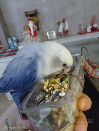 Vengo dolcissimo inseparabile blu Per mancanza di tempo da dedicargli Allavato a mano da quando era piccolo e abituato a bambini , vendo ho scambio con pappagallo di mio gradimento
