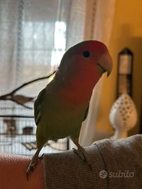 Inseparabile e calopsite allevati a mano e gabbia