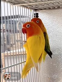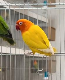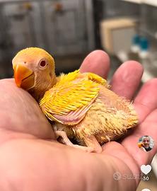 Pullo di Inseparabile Fischer Lutino portatore di opalino da allevare a mano. Cites e anello in regola. Non spedisco e non consegno