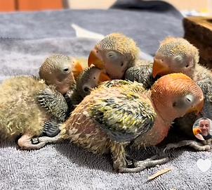 Inseparabili Fischer pulli da allevare a mano. Hanno già iniziato lo svezzamento a mano. Anello e Cites in regola con le norme di legge. Non spedisco e non consegno