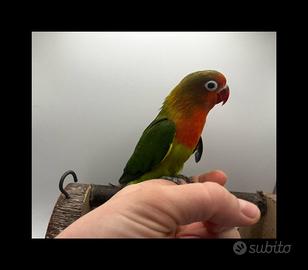Inseparabile Fischer giovane, colori vivaci, pronto alla consegna. Splendido esemplare, caratterizzato da una colorazione brillante e sana (verde acceso con sfumature arancio e rosso). Non sessato Non allevato a mano Soggetto sano, attivo e vivace Pronto alla consegna immediata Ideale per chi cerca un pappagallino rustico e naturale, perfetto sia come compagnia sia per eventuale inserimento in allevamento. Per info, foto aggiuntive o video non esitare a contattarmi tramite Subito.