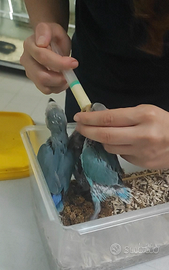 Disponili presso Viva il lupo, Genova pulli di inseparabili roseicollis allevati a mano domestici.