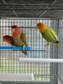 Roseicollis maschi due opalino/lutino e arancio 2024 un opalino faccia arancio/probabile lutino 2024 e un oliva/lutino opalino e cannella 2025 Preferibilmente contatto telefonico 3289418770 zona prima porta