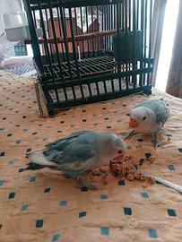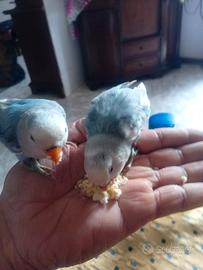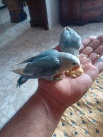 Due inseparabili allevati a mano sono fratelli Colore- azzurro Non so ancora specificare se sono maschio o femmina perché sono ancora piccoli 1- 50? Per maggiori informazioni contattatemi su WhatsApp 3888721459