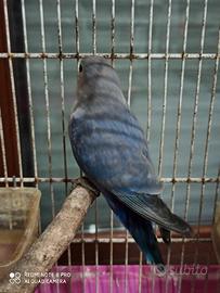 Inseparabile faccia arancio blu e verde all.a mano in fase di svezzamento di 30 giorni, verrà ceduto o già autonomo o da finire lo svezzamento a mano, disponibile anche il nutribird sfuso.