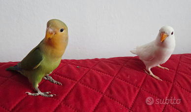 Inseparabili ( agapornis roseicollis) allevati a mano, svezzati, disponibili Lutino, Albino, Pezzato serie verde, Faccia arancio. Cresciuti in ambiente domestico, socievoli ed abituati al contatto.