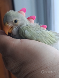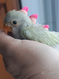 Due dolcissimi inseparabili allevati a mano non ancora sessati .
