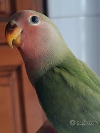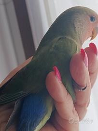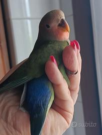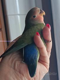 Dolcissimo inseparabili allevato a mano. Maschio con certificato di sessaggio. Due mesi. Abituato al contatto umano. Consigliato a persone che hanno tempo da dedicargli . Solo tante coccole e attenzioni. Il prezzo è indicato nell' annuncio. Non trattabile.