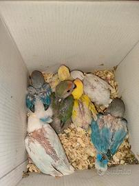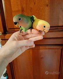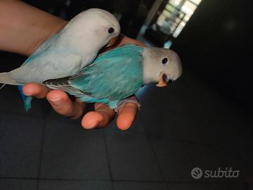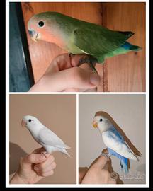 Vendo inseparabili allevati a mano. PREZZI: -Da IMBECCO 35 euro (pullo da imbeccare con la siringa). -SVEZZATO 65 euro (SOLO SU PRENOTAZIONE con Acconto, il pullo sarà ceduto a svezzamento completato e quindi mangerà da soli i semi). Colorazioni disponibili in base alle nascite: Gialli, azzurri, albini, verdi, grigi,blu, pezzati, bianco-azzurrino, verde oliva ecc.. Contattatemi per qualsiasi info,foto e altro. (Gli inseparabili in foto sono tutti soggetti nati nel mio allevamento e sono stati già venduti)