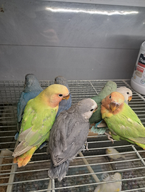 Bellissimi inseparabili allevati a mano, colori come in foto, per altre info scrivetemi, prezzo NON trattabile. Sesso non si conosce ancora. Per ricerca: Pappagalli Uccelli Pappagalli allevati a mano