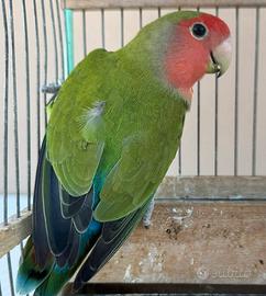 Come da titolo vendo questo splendido inseparabile anno 2024 probabile maschio ma non sessato taglia grande ottima forma e piumaggio tolgo per fine passione.