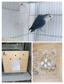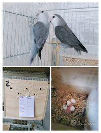 Disponibili Pulli di 23 GG o soggetti allevati a mano docili ed abituati al contatto umano, ottimi come compagnia dei nostri bambini. Disponibili in colori Grigio, Bianco striato azzurro, Verde o Giallo testa rossa, Blu, Bianco e Viola. Nelle foto le mutazioni possibili. Seguimi su Instagram passione_inseparabili. Prenditi cura della loro crescita.