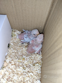 Vendo pulli da imbecco di pappagallo inseparabile allevato a mano, già abituati al contatto umano e a mangiare con la siringa. 35 euro l'uno. 3384354706