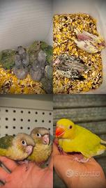 Cedo pulli e soggetti quasi svezzati o adulti di inseparabili e calopsite, disponibili in varie mutazioni ed età.