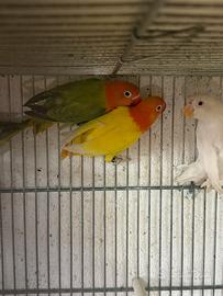 Disponibili vari esemplari di inseparabili Fischer, nati e anellati nel mio allevamento amatoriale. Muniti di certificato cites e sessaggio. Prezzo in base alla mutazione