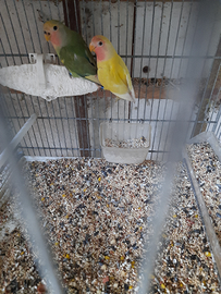 Inseparabili giovani di due mesi e mezzo, nati nel mio allevamento. Genitori visibili.