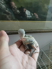 Cedo pullo di inseparabile di circa 15/16 giorni, ancora molto piccolo e da imbeccare manualmente.